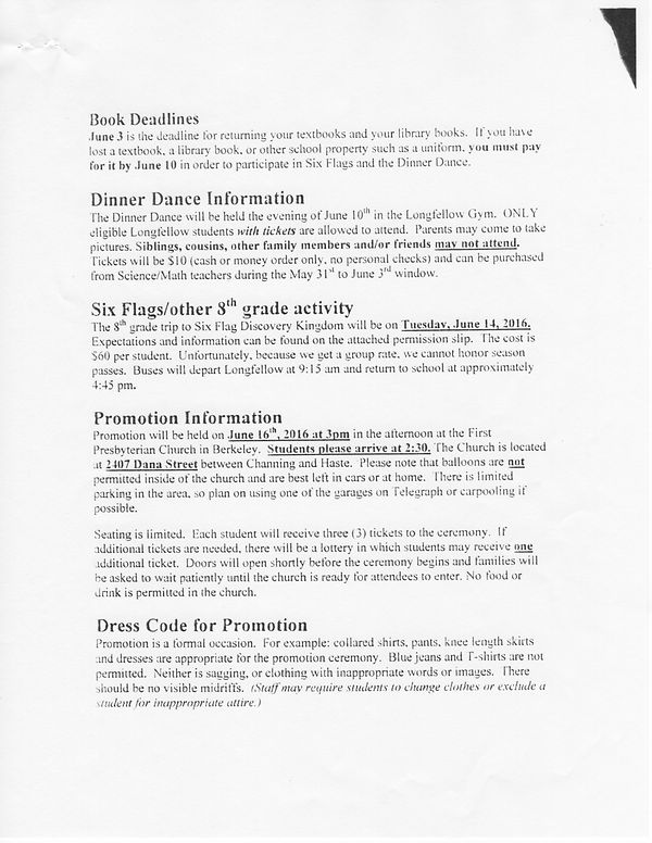 8th Grade End of Year Activities